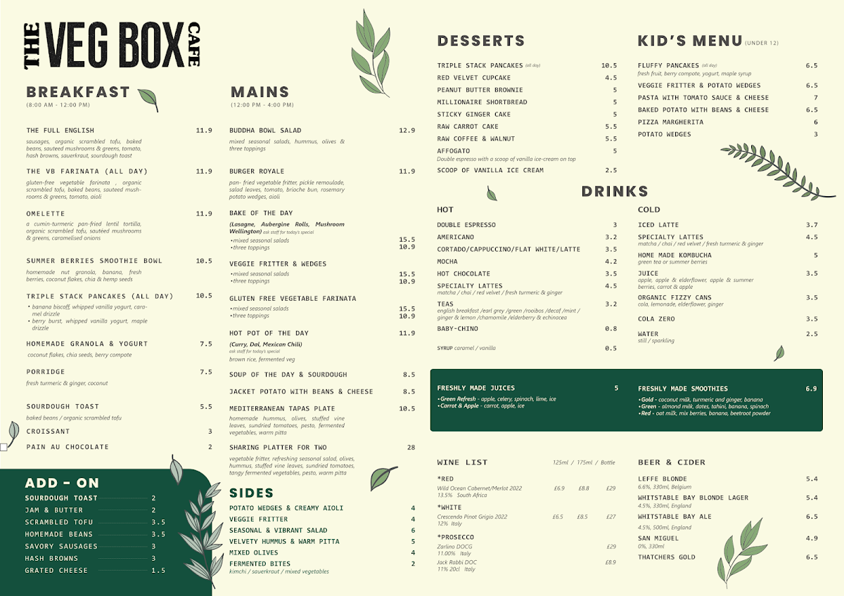 Complement your meal with artisanal drinks ranging from robust coffees to soothing specialty lattes, each crafted to perfection. The inviting atmosphere enhances the experience, making it ideal for both a quick bite or a leisurely lunch. At The Veg Box Cafe, every dish promises a celebration of flavor. Join us and taste the joy of wholesome eating!